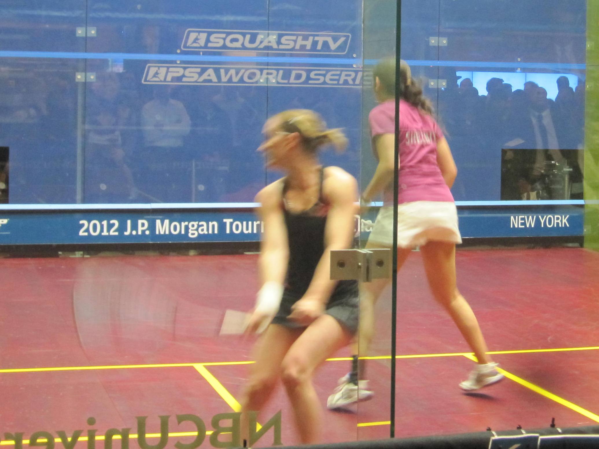 Well, what I know is that I’m really looking forward to seeing more of Nour El Sherbini’s matches going forward, along with those of her other young countrywomen I’d seen play at the ToC, Kanzy Emad El DeFrawy and Nour El Tayeb. In the meantime, I’ll be watching the twenty year old Dipika Pallikal take on thirty-three year old Natalie Grinham this evening in the women’s finals at 6:30. After watching Grinham adjust her game with El Sherbini, cover the court so splendidly, and make such wise shot selections, I just don’t think she can lose. In contrast, Pallikal runs so hot and cold on the court; she seem a bit sloppy one moment and absolutely brilliant and sharp the next. If she’s more of the latter, it’ll be an interesting match. Fingers and racquets crossed.