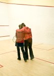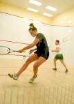 And who wouldn’t want to pick it up again (or for the first time) on an evening like this? By the time the second match was underway, the wine bottles were coming uncorked and the EAC captain—and hostess extraordinaire—was pouring glasses of various vintages for anyone within reach. Thankfully, I was. Although trying to balance a cup of cabernet with a Nikon takes more than squash skills. As does observing the intricacies of a game while peering through a lens and taking personal bets on where the ball will end up next, because that’s where you want your camera pointing.