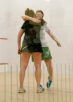 Looking through a camera at a squash match is a new game for me and, admittedly, I was so focused (all puns are intended) on taking photos that I didn’t give a lot of thought to the actual matches on the other side of my lens. Which might have been just as well; writing about people you know can get awkward and I had friends on both teams. But who doesn’t like a nice photo of themselves? Which is how I ended up taking over three hundred of them*, because I knew many would not be so nice. Due to the photographer, not her excellent subjects.