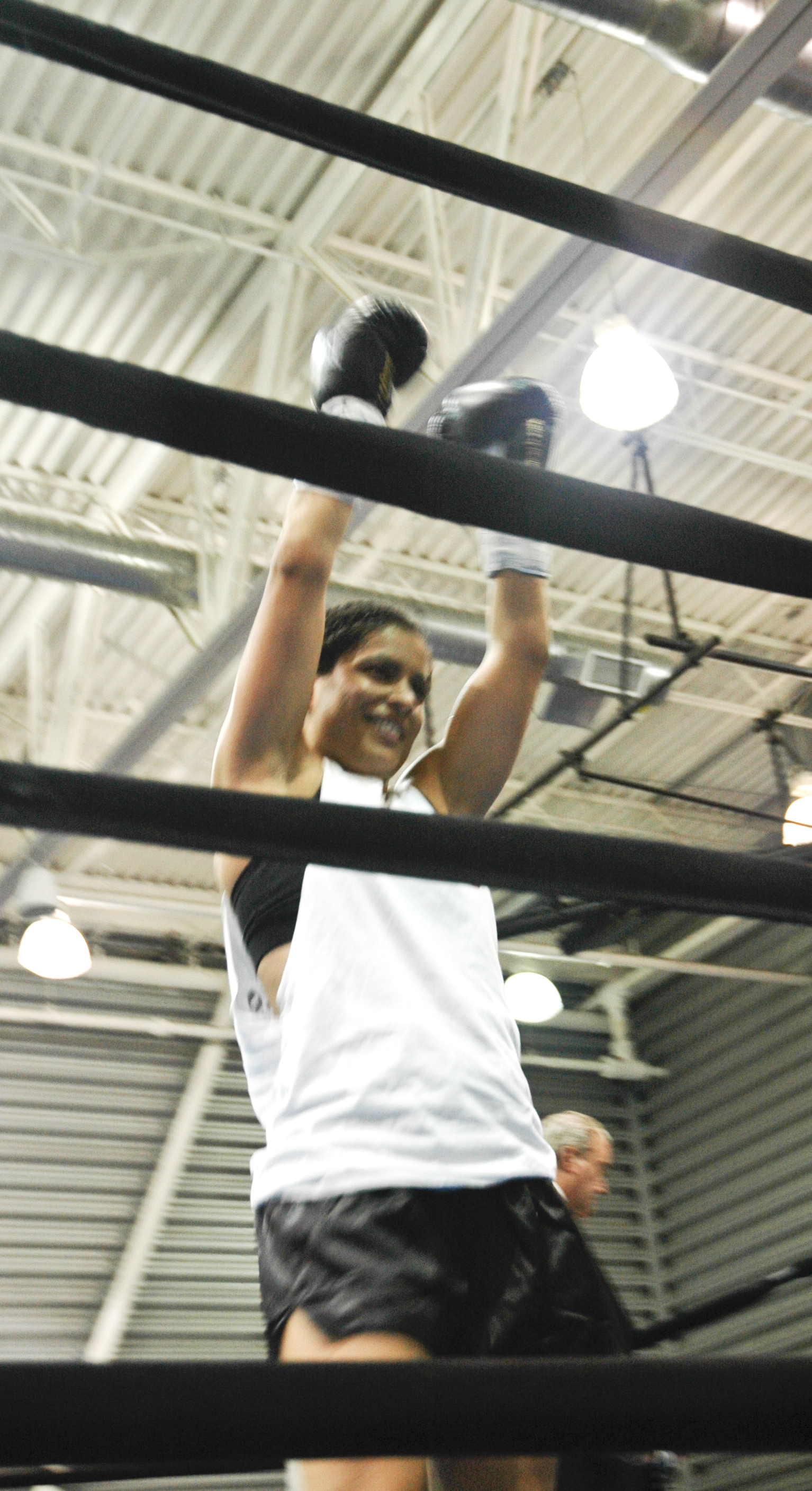 I had never seen a live boxing match before. The mostly male, bare-chested world of boxing seemed about as far as one could get from the ‘white clothing only’ private club contingent of squash that I’d come to know. But when a friend mentioned that Ms. Santiago, a two-time Golden Gloves Champion, had an upcoming fight, I was intrigued. Motivating women to hit a ball instead of hitting an exercise class is often hard enough, but getting a woman to hit another woman? I wanted to see it with my own eyes . . . and maybe I’d learn something to help my squash game.